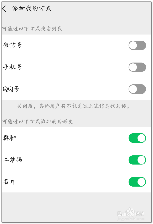 开启你所需要别人添加或搜寻你的体例权限,即可快速添加