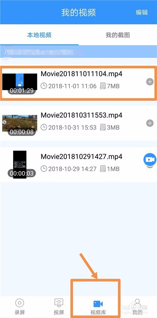 视频录制完当作今后,我们可以在视频库中找到我们录制完当作的视频文件。