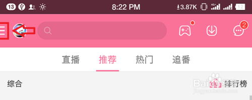 首先,我们打开本身手机上的哔哩哔哩,进入到B站的本家儿界面。然后,我们往屏幕的左上角看去,那边有个“三”字形的图标,我们点击它。