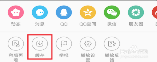我们再来说说缓存视频的事。在视频界面,我们往右上角看,那边有个三个竖着的小点组合的图标,点击它!