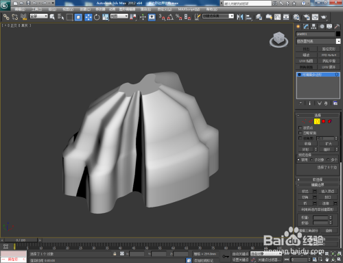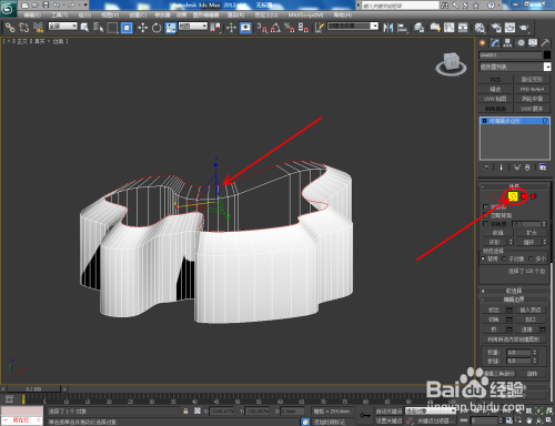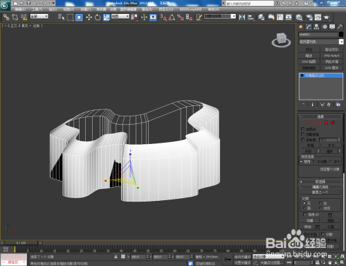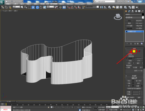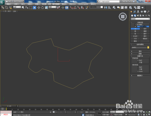 打开3Dmax2012软件,点击【建立】-【图形】-【线】,在作图区域绘制一个线段图案。点击右边工作区中的【极点】图标,选中图案上的所有点并将其进行光滑圆化处置;