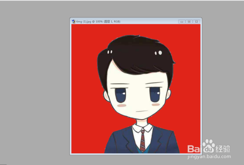 首先打开Photoshop软件,打开需要换布景颜色的证件照。