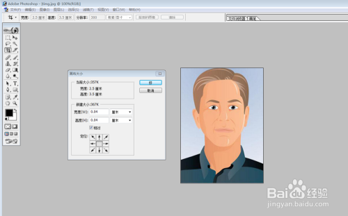 我们打开Photoshop软件,打开需要建造的证件照,一寸证件照尺寸是宽度2.5厘米,高度3.5厘米,是以我们选择裁剪东西,进行设置:宽度2.5厘米,高度3.5厘米,分辩率300像素,移动到合适的位置进行裁剪。