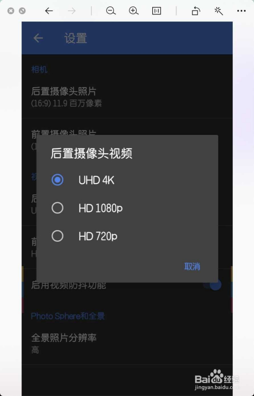 设置录像分辩率,那么点击录像的摄像头,选择分辩率。