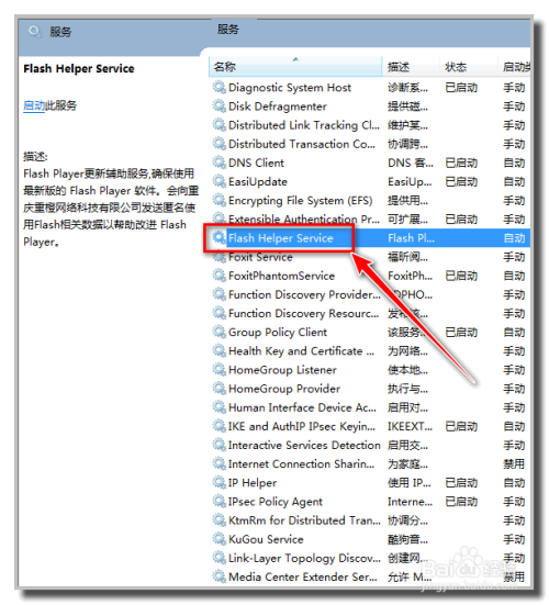 打开办事后,找到Flash Helper Service办事,然后双击打开这个办事对话框。