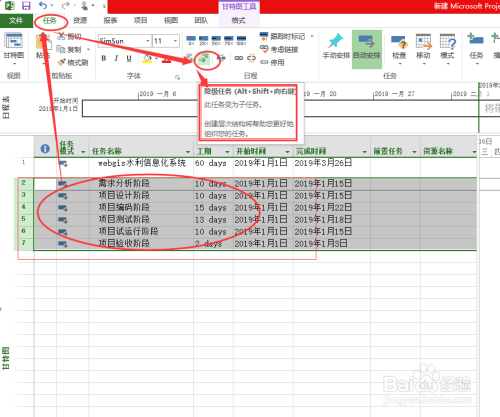 本篇经验将和大师介绍在Microsoft Project中如何添加使命和子使命以及如何设置使命之间的依靠关系,但愿对大师的工作和进修有所帮忙!