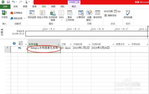 打开文档,我们输入一个本家儿使命的名称、工期、起头时候和竣事时候信息,如下图所示: