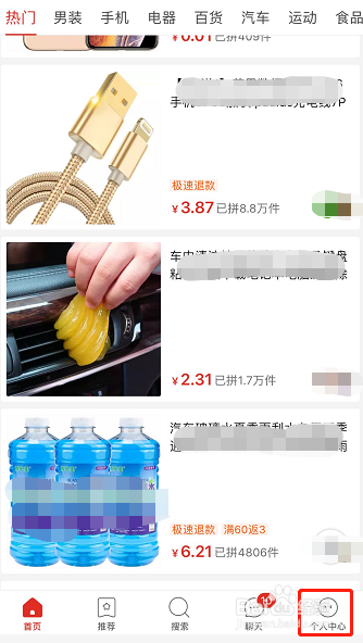 去哪里查看已保藏的商品呢,我们回到拼多多首页。点击首页右下角的【小我中间】图标,如图所示!