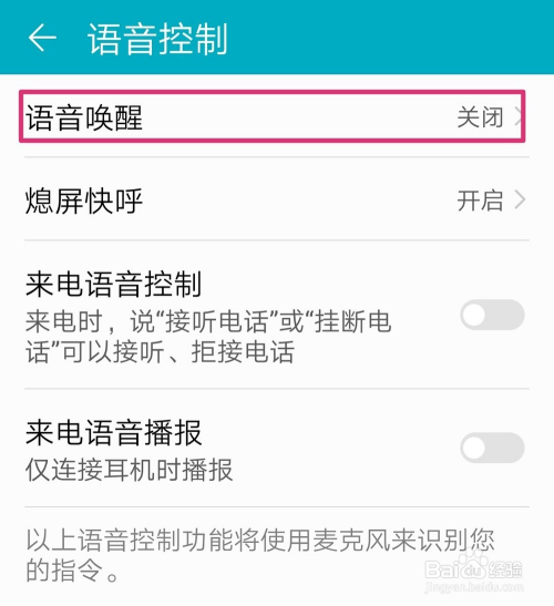 然后进入语音叫醒页面,将【语音叫醒】功能开启。