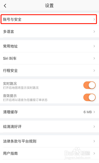 然后来到设置本家儿页,在设置下找到【账号与平安】一栏,如图所示,点进此栏!