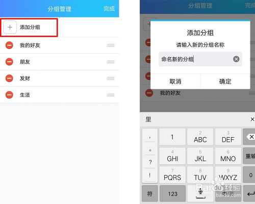 也可以添加分组点击左上角的加号定名组名称,可以分类别区别老友
