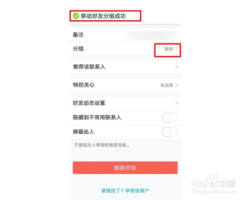 最后会呈现“移动该老友当作功”到分组“发家组”.