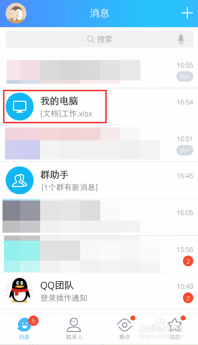 手机打开QQ,在动静页面,选择一个聊天页面,好比:点击【我的电脑】。