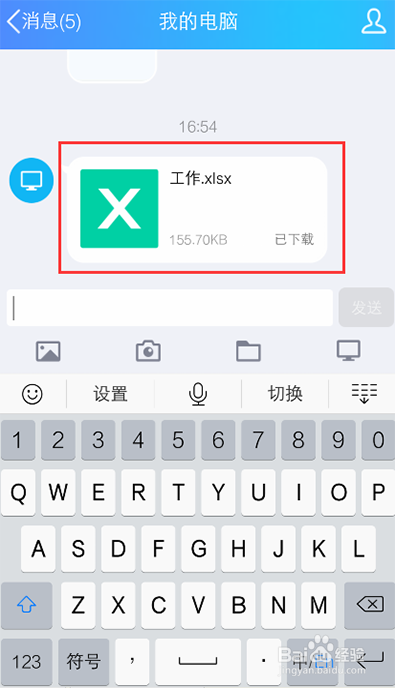 进入聊天页面,我们可以看到从电脑发的文件,点击下载它。