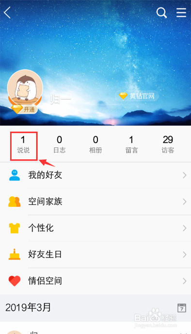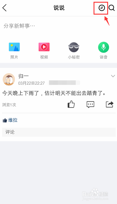 进入说说页面,点击右上角时候图标。
