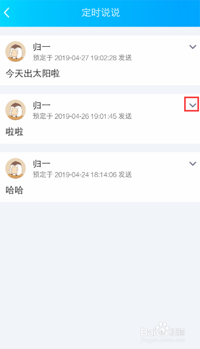 进入按时说说页面,选摘要删除的按时说说边上的箭头。
