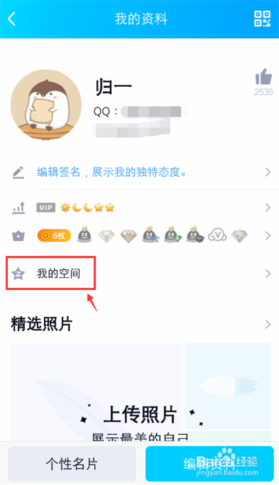 进入页面,点击【我的空间】。