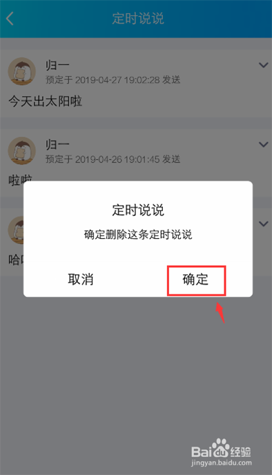 呈现对话框,点击【确定】,这样QQ空间的按时说说就打消了。