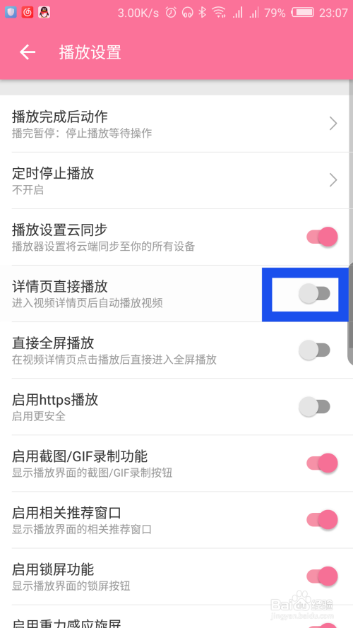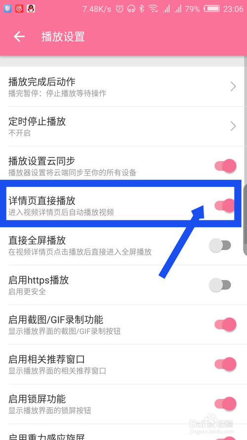 在播放设置里面,能看到详情页直接播放选项,点击后面封闭。