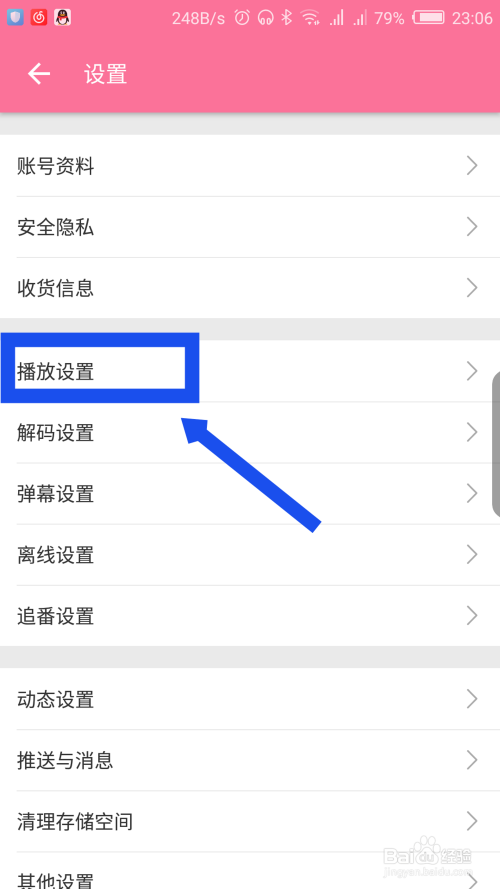 在设置里面,选择播放设置,点击打开播放设置。