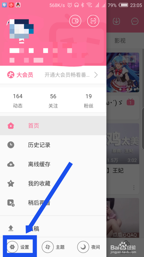视频的主动播放是可以封闭的,在首页上,点击左上角的三。