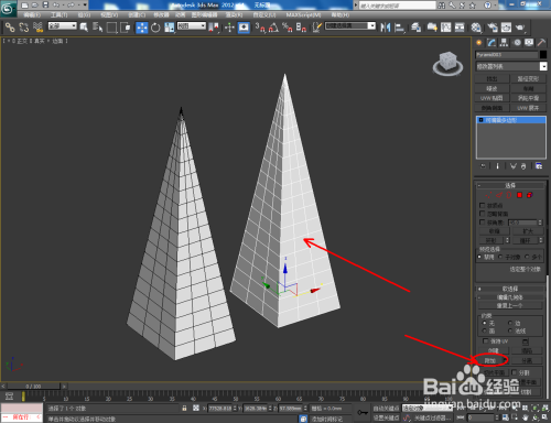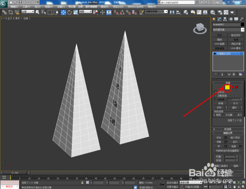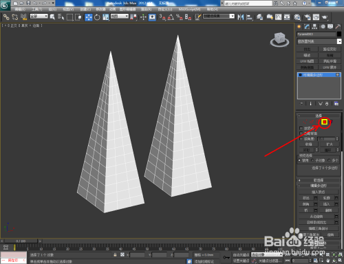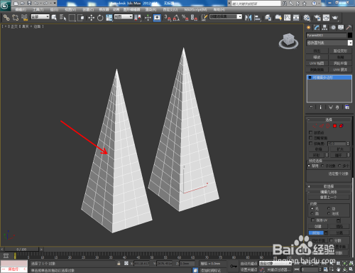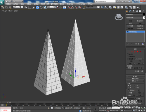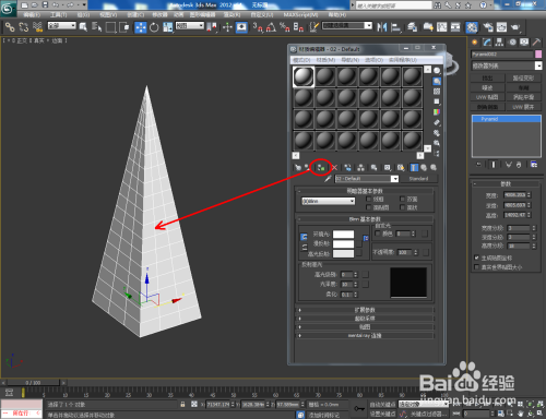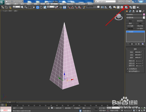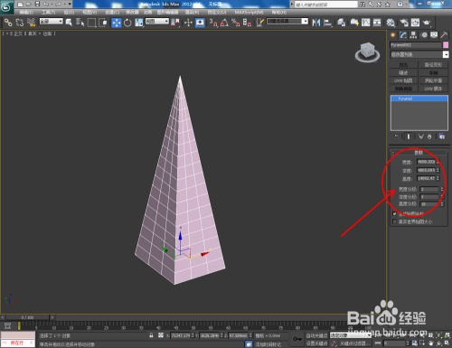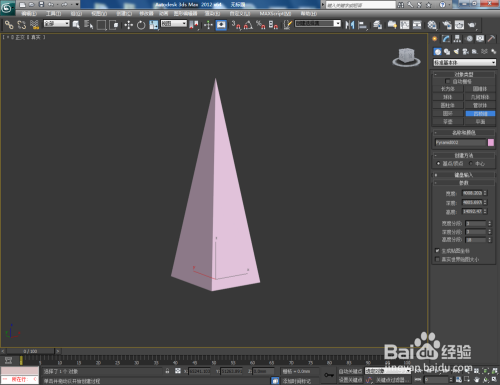 打开3Dmax2012软件,点击【建立】-【几何体】-【四棱锥】,在作图区域绘制一个四棱锥模子并按图示设置好模子的各个参数;