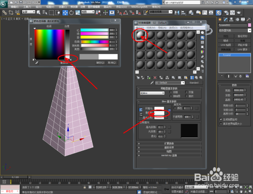 点击【材质编纂器】,弹出材质编纂器设置栏,按图示设置一个白色材质球并附加给模子。选中模子,点击【对象颜色】将模子的对象颜色设置为:黑色;