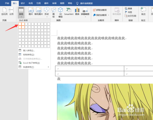 然后我们点击上方的插入选择表格,插入2×2的表格。