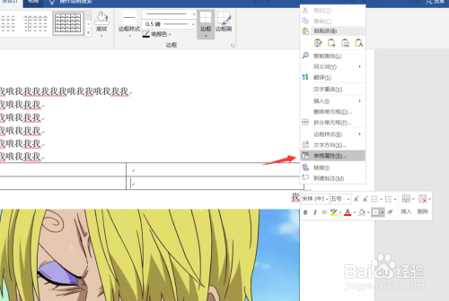 然后我们右击设置表格属性,进入表格属性设置页面。