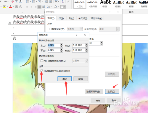 进入表格属性设置界面,我们点击选项,然后将主动重调尺寸以顺应内容打消即可。