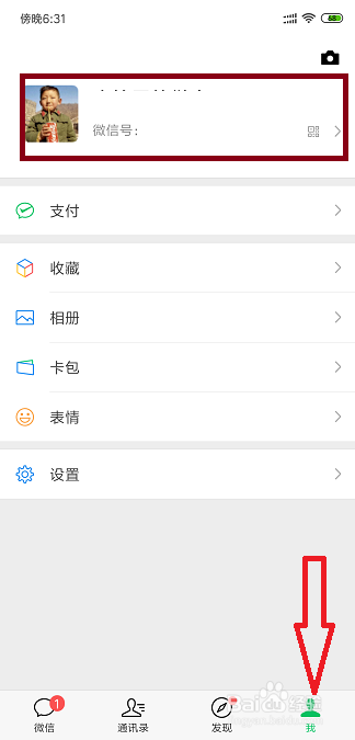 我们打开〔微信〕今后,我们在〔我的〕里面可以看到我们本身的头像,我们点击〔头像〕。