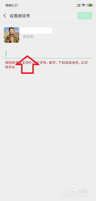 我们点击输入本身想要的微旌旗灯号,然后我们点击上方的〔保留〕,我们微旌旗灯号只能点窜一次。