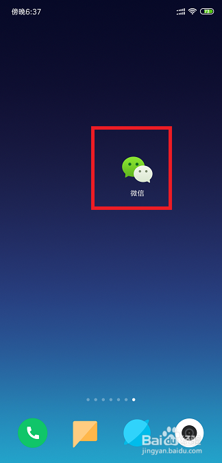 首先我们打开手机,然后找到〔微信〕,我们点击打开〔微信〕。
