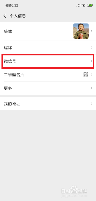 点击头像今后看到有〔微旌旗灯号〕的选项。