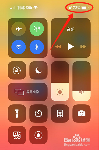 一种是从屏幕右上角往下滑,在节制中间里,会显示电池百分比。这是最常用的一种操作方式。