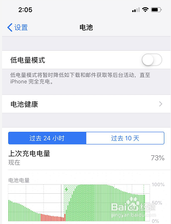 打开设置,在iPhone XS Max的电池设置里面,也只有开启低电量模式和电池健康,没有显示电池百分比的设置。