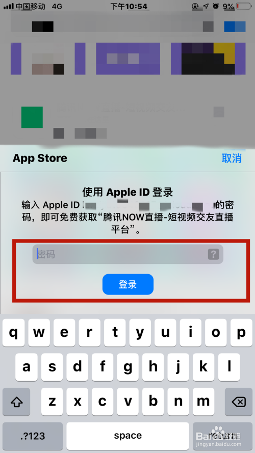 若是你是第一次用你的iPhone下载这个软件,就会先让你输入你的id密码,授权购物,当然这个购物一般是不需要钱的,可是也有部门软件是需要收费的,本身鄙人载时要看清晰。