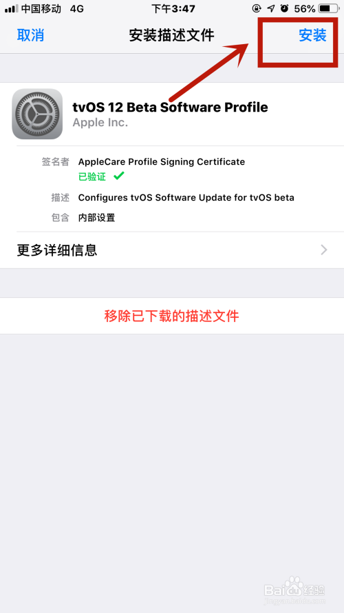 最后找到适才下载的描述文件,点击进入该描述文件的【安装描述文件】的界面
