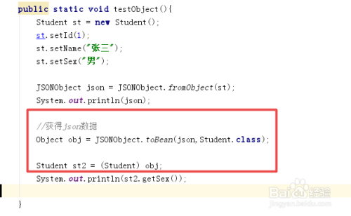 Student st2 = (Student) JSONObject.toBean(objJson,Student.class);