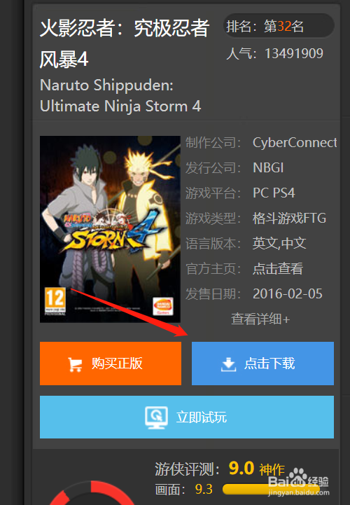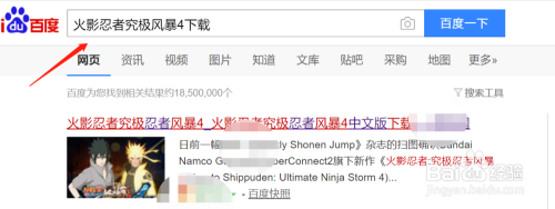 首先我们百度输入火影忍者究极风暴4下载,点击进入下载页面;