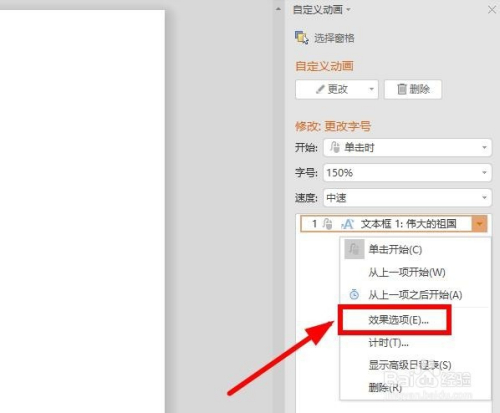 呈现很多按钮,它们是动画呈现的各类体例和路径,选择”更改字号“,点击。