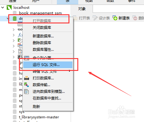 在指定命据库的位置右键单击,选择运行SQL文件