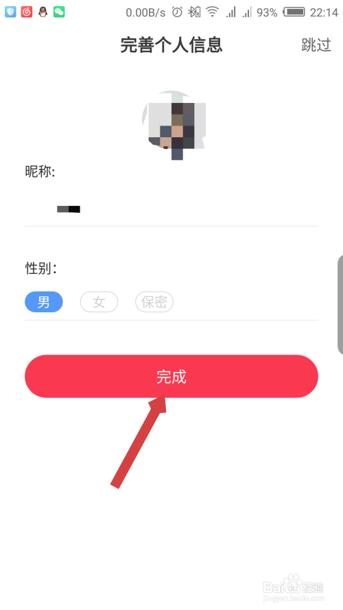跳过绑定手机号,在打开的小我信息界面,也可以跳过,或者点击下面的完当作。