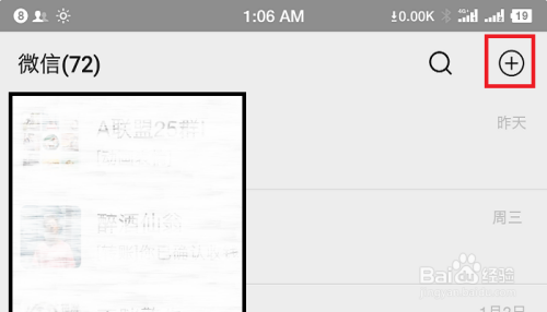 首先,我们需要打开本身手机上的微信app。在本家儿界面中,我们需要点击右上角的加号。