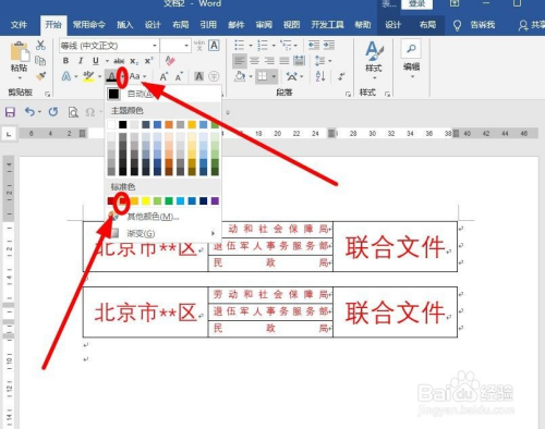把表格全数选中后,找到“字体”选项组中的“字体颜色”后面的下拉箭头单击,鄙人拉菜单找到“红色”单击