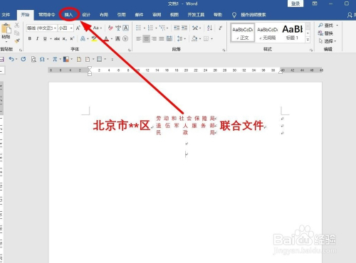 想建造一份如下图所示的三部分结合下发的红头文件文件头,操作步调是这样的: