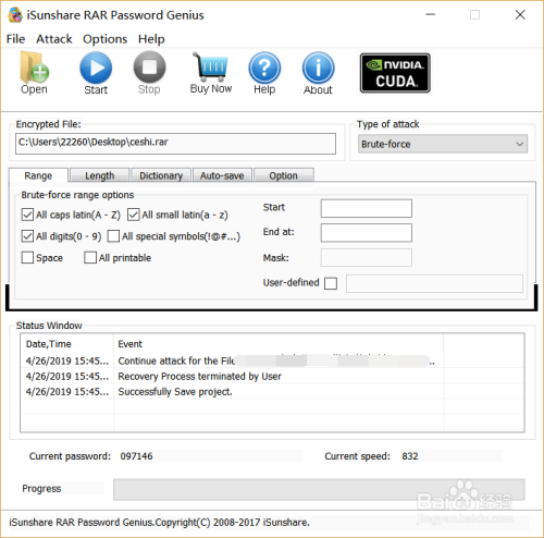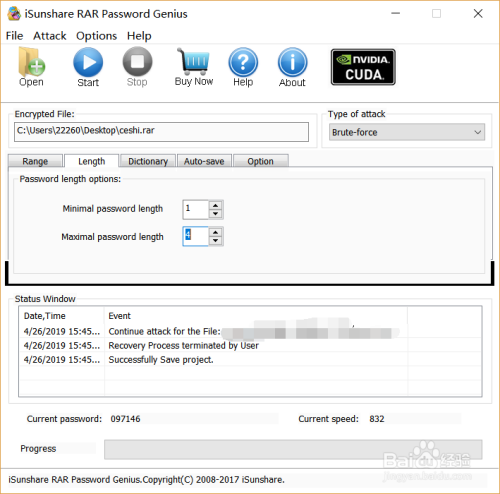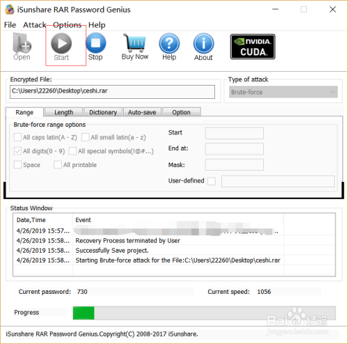 点击start就可以就可以了,时候的长短取决于密码的长度和类型以及电脑的运行速度。