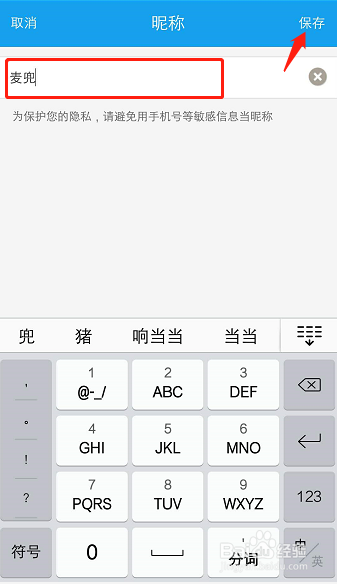 在昵称页面中,输入想要的昵称,点击保留: