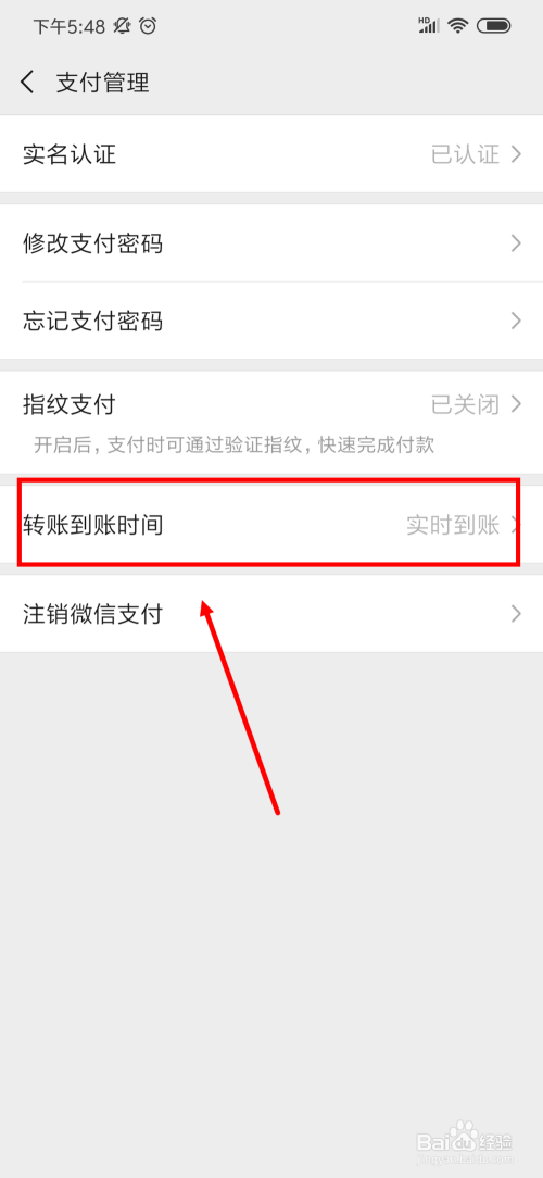在【支付办理】的页面中,选择转账到账时候,小编这里的到账体例是及时到账的。