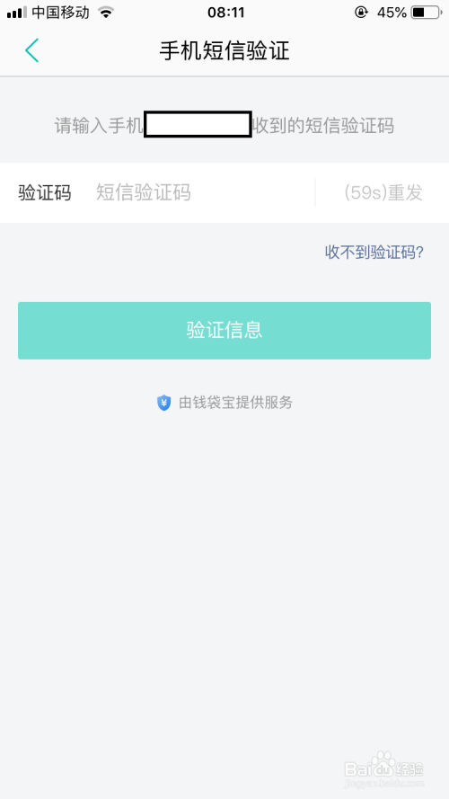 然后切换到手机短信验证的界面中输入那时的短信验证码后再点击“验证信息”按钮。